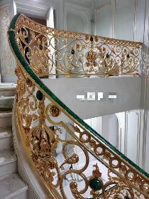 杭州銅樓梯廠家 銅樓梯扶手生產定制材料:黃銅、紫銅,采用實心鑄壓銅花等工藝規格:根據客戶實際要求定制 ..